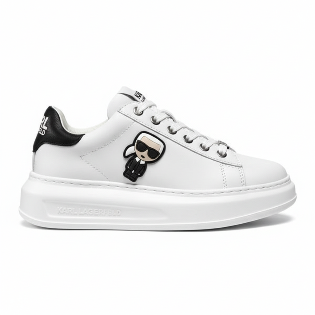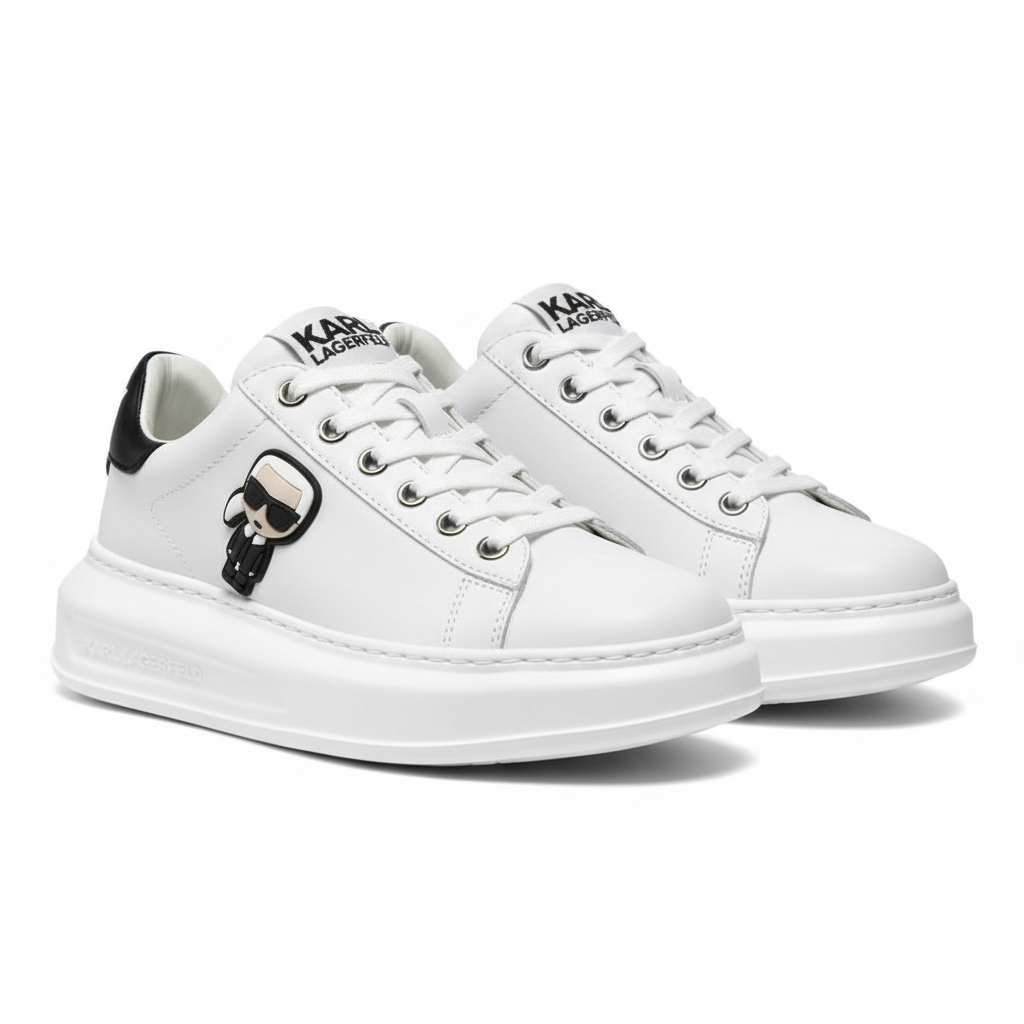 The Karl Lagerfeld All White sneaker offers a fresh, minimal design with signature branding, perfect for a clean and modern look.