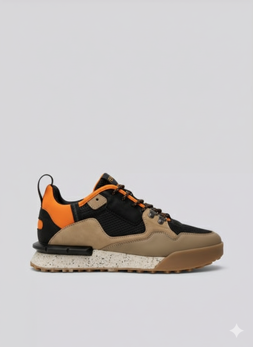 The Replay Multi sneaker mixes earthy tones with orange highlights, blending rugged streetwear aesthetics and everyday comfort.